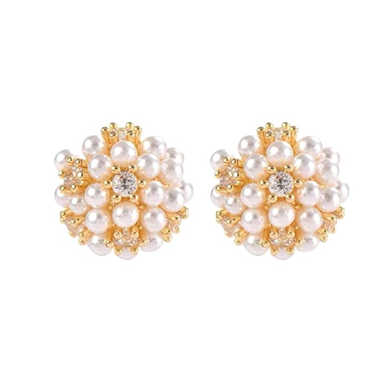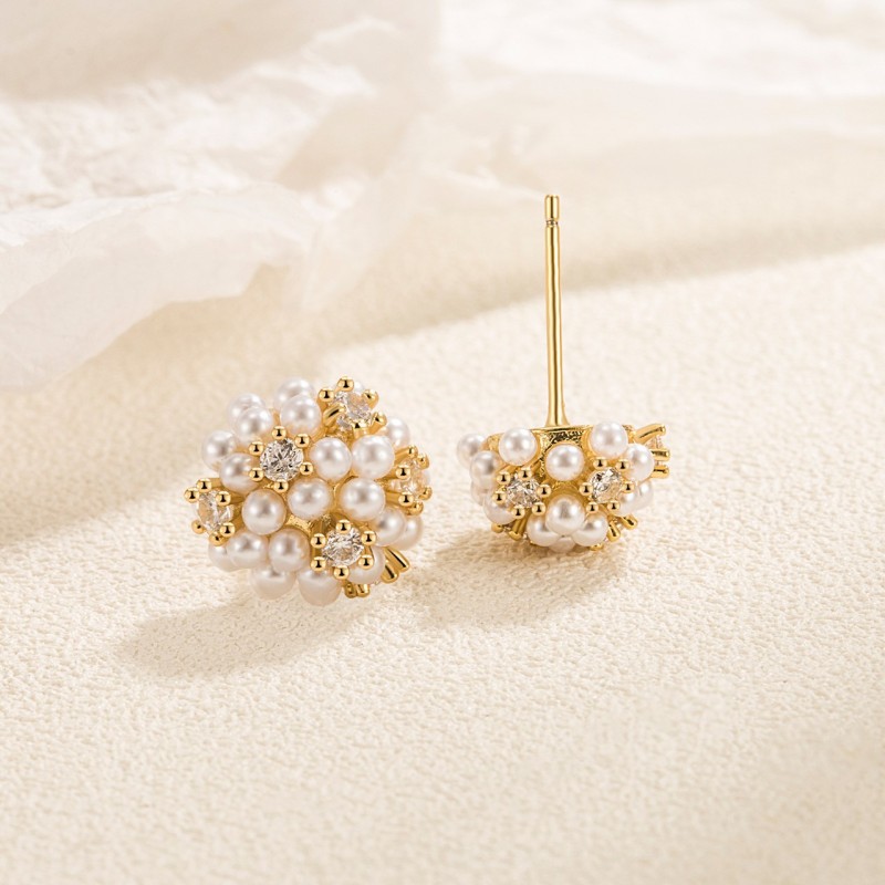 Kolczyki ze stali szlachetnej platerowane złotem, perełki i cyrkonie, sztyftKST3148