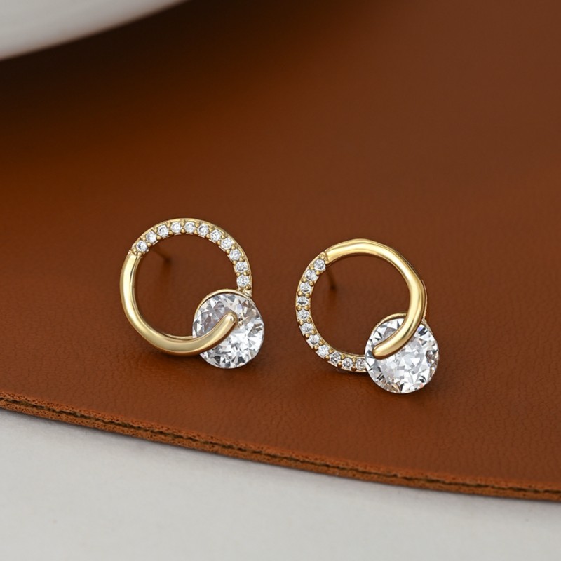 Kolczyki ze stali szlachetnej pozłacane 14k złotem, cyrkonie, kółka sztyft KST3471