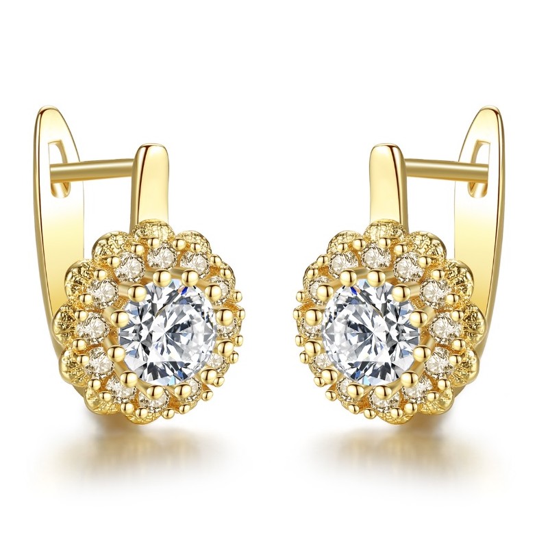 Kolczyki ze stali szlachetnej pozłacane 14k złotem, cyrkonie KST2858
