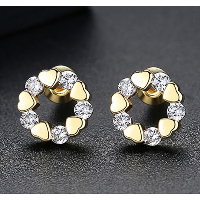 Kolczyki ze stali szlachetnej pozłacane 14k złotem, cyrkonie serca KST2856