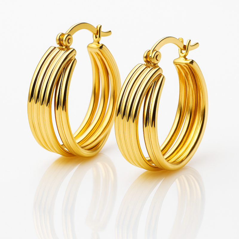 Kolczyki ze stali szlachetnej pozłacane 14k złotem, koła KST3455