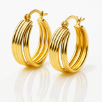 Kolczyki ze stali szlachetnej pozłacane 14k złotem, potrójne koła KST3457