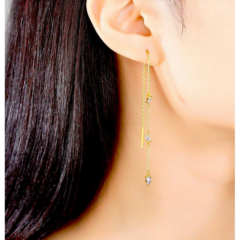Kolczyki ze stali szlachetnej pozłacanej 14k złotem, cyrkonie, wiszące KST2852