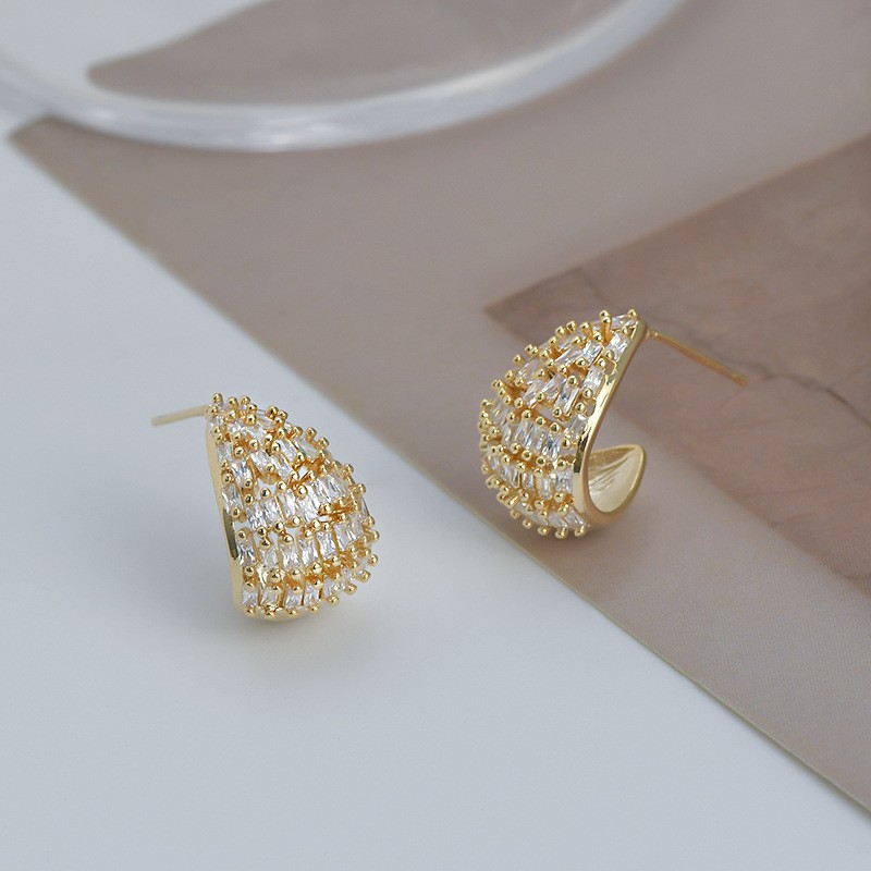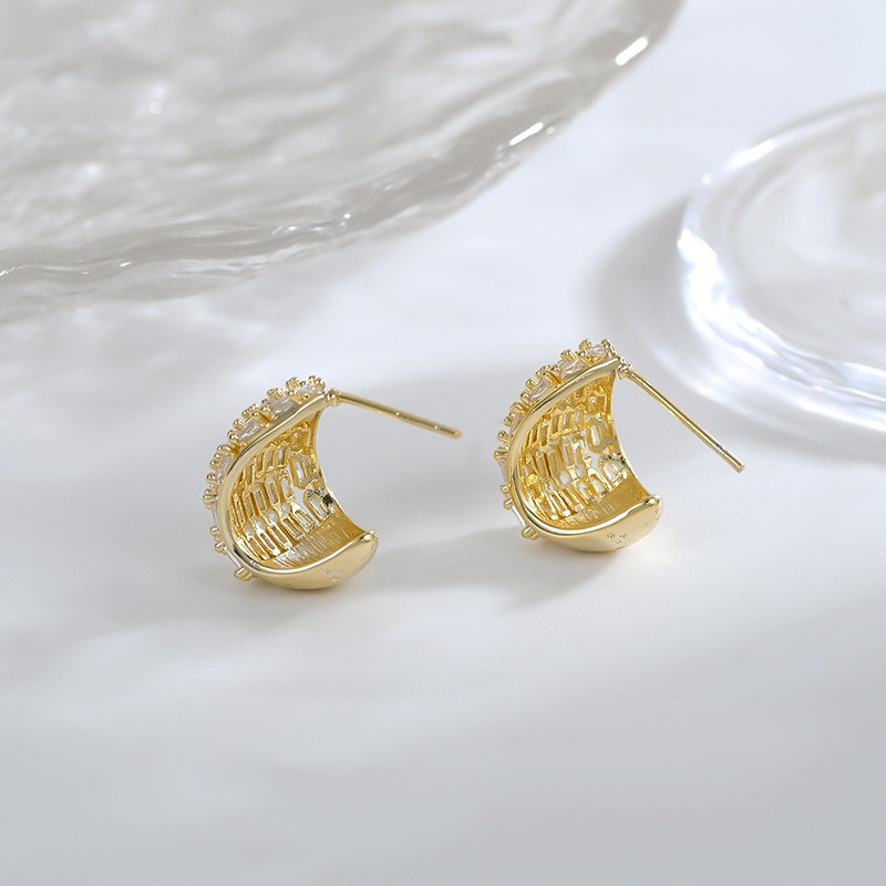 Kolczyki ze stali szlachetnej pozłacanej 14k złotem z cyrkoniami, sztyft ze srebra S925 KST3369