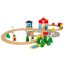 torów, w zestawie znajdują się również pociąg z wagonem, samochód, budynki,