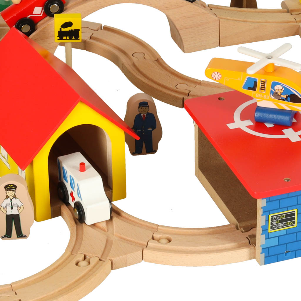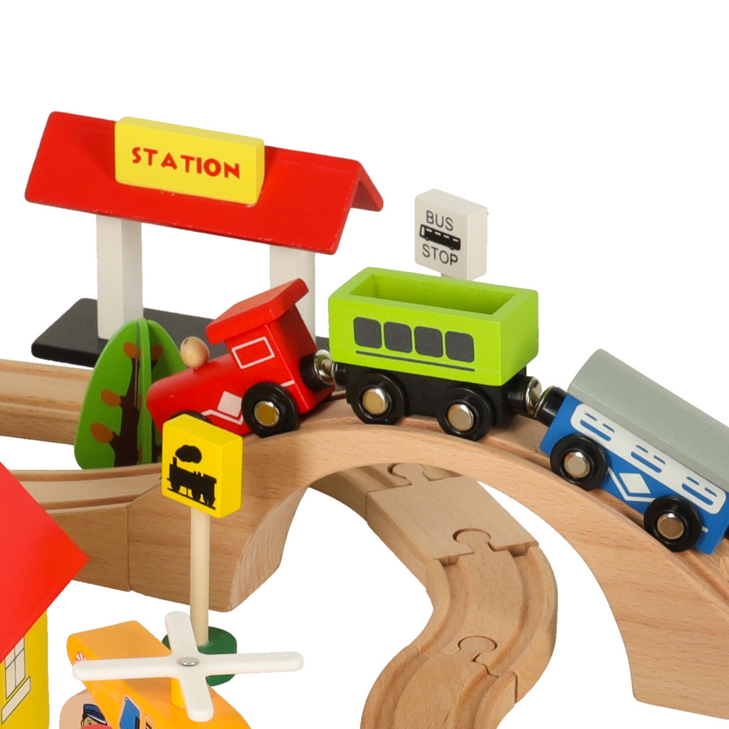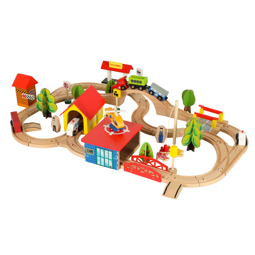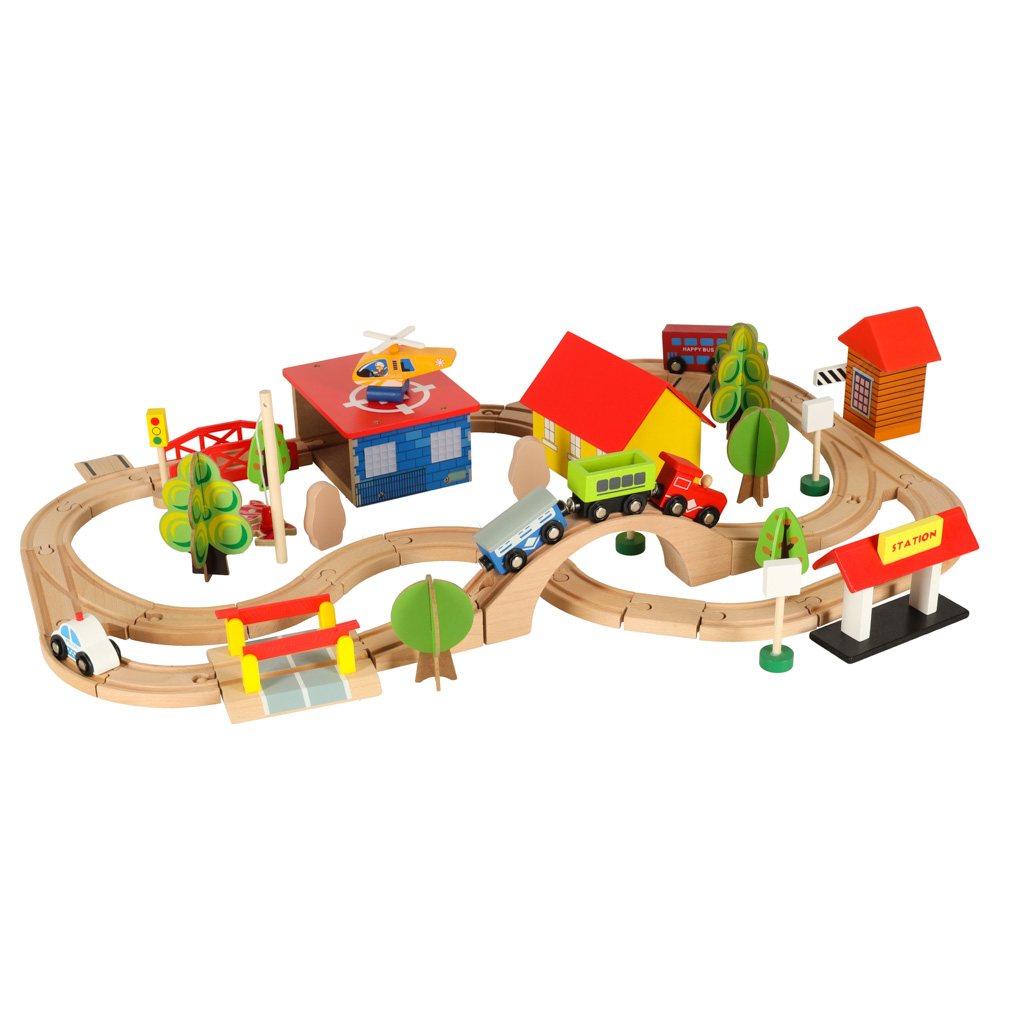 Kolejka drewniana pociąg lokomotywa miasto 69 elementów