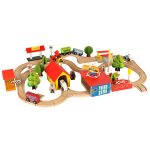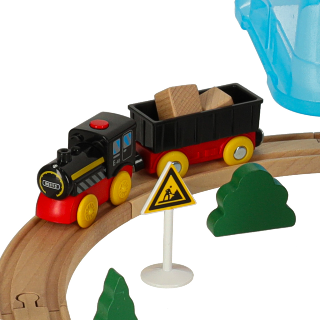 Kolejka drewniana pociąg lokomotywa plac budowy 55 elementów