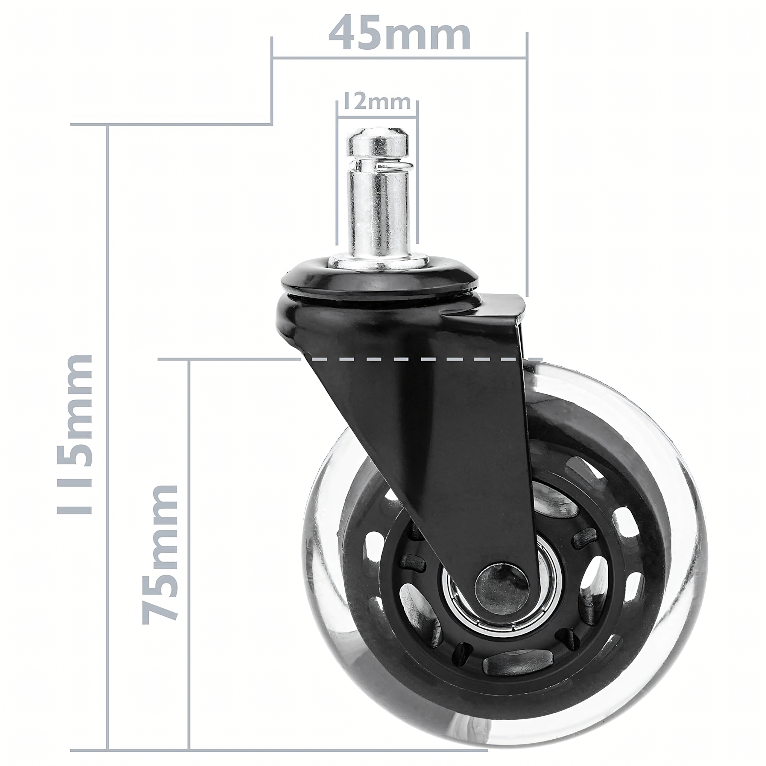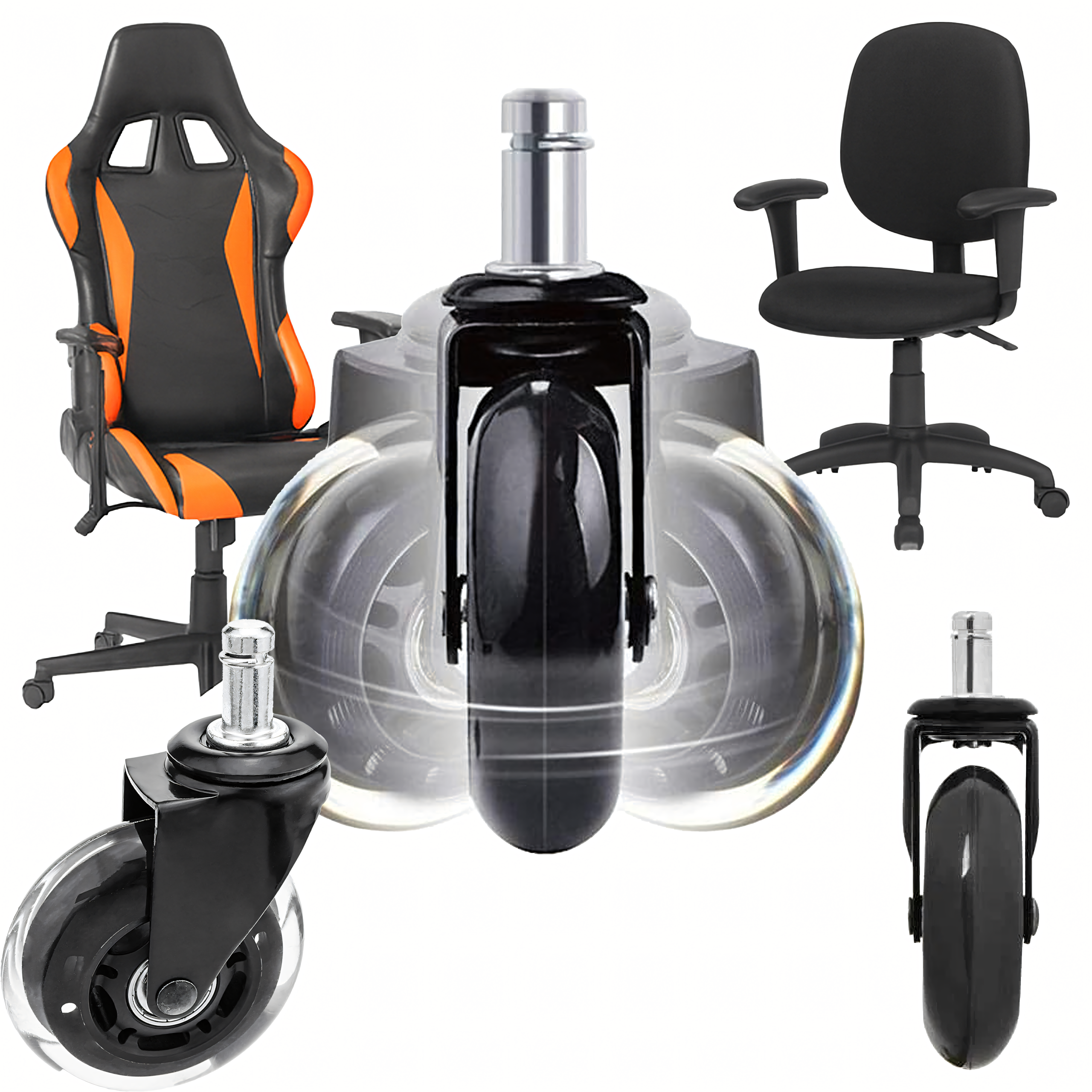 Trwałość, cicha praca i ochrona podłóg w jednym! Wysokiej jakości kółka kauczukowe to uniwersalne rozwiązanie, które sprawdzi się zarówno w domowym biurze, jak i w intensywnie użytkowanym fotelu gamingowym. Pasują do większości foteli z trzpieniem 12 mm.