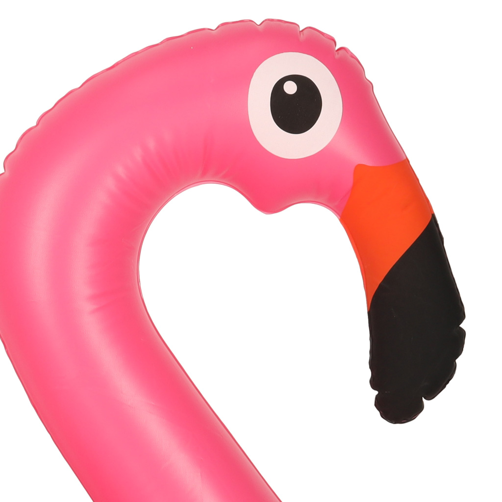 Dziecięcy dmuchany materac. Niezbędny podczas wypoczynku dziecka nad wodą oraz nauki pływania. Posiada dwie bezpieczne komory (ok. 6,5cm) na nóżki. Wykonany z plastiku. Dostępny w kolorze różowym z wizerunkiem flaminga. Wymiary: 66x47x57cm.