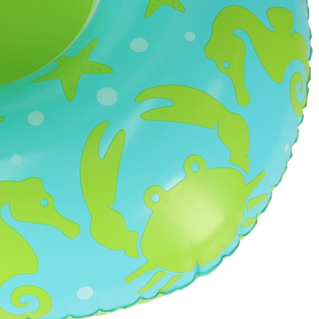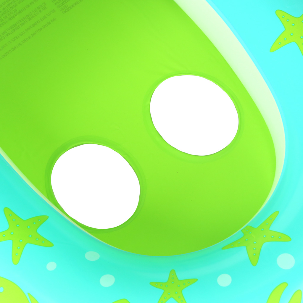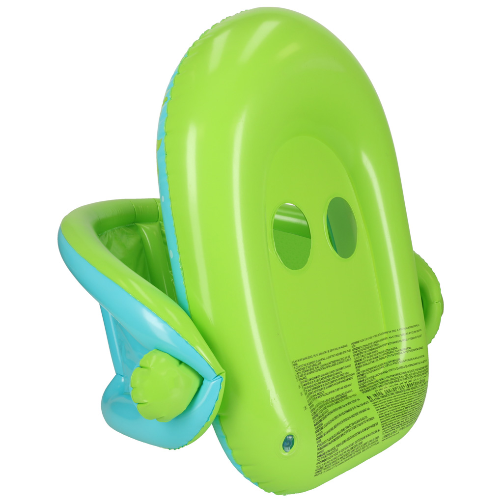 Dmuchane koło do pływania dla najmłodszych. Posiada otwory na nogi oraz daszek chroniący od promieni słonecznych. Dla dzieci w wieku 1-2 lata. Kolor: zielony. Wymiary: 80 cm x 85 cm.
