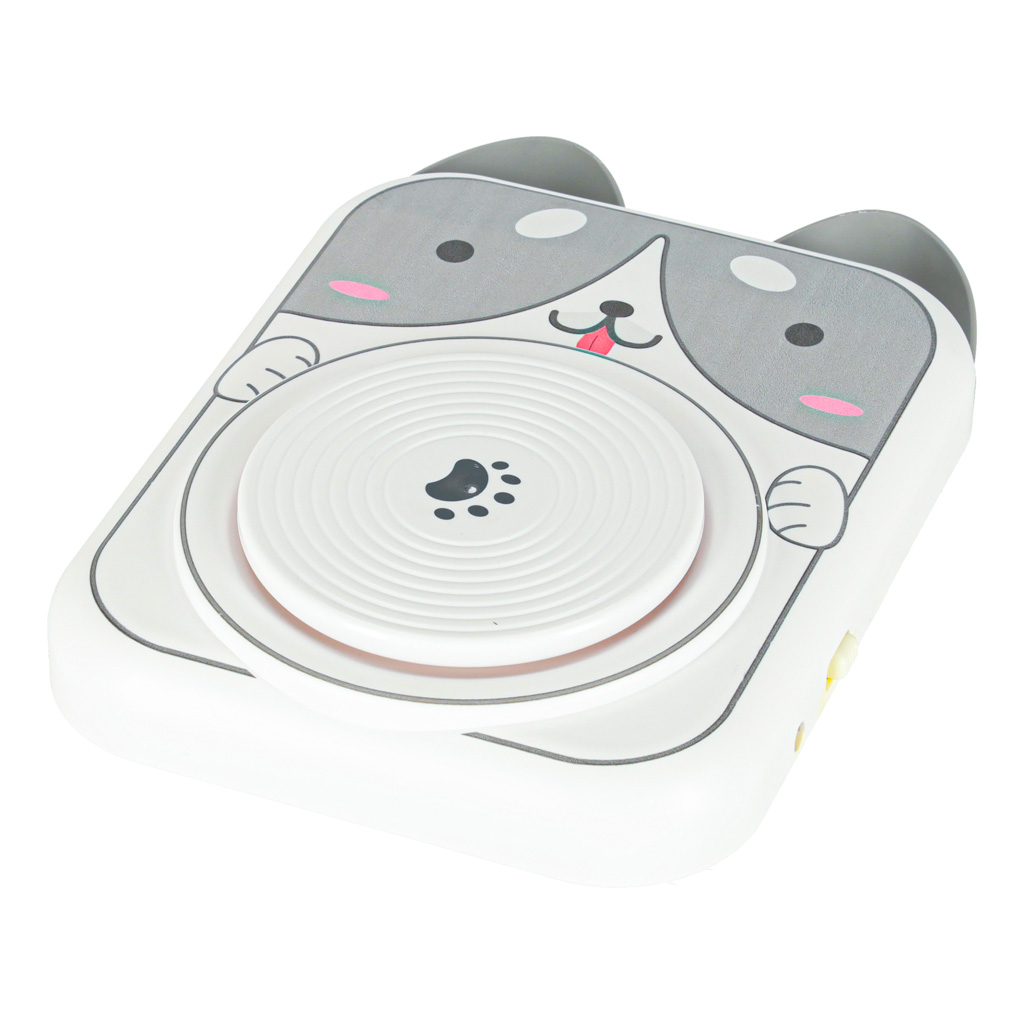 Elektryczne koło garncarskie dla dzieci zasilane przez USB, średnica koła 12,7 cm, zestaw zawiera glinę, 6 farb, 2 pędzelki, 4 narzędzia, fartuszek i instrukcję. Stabilna podstawka z motywem pieska. Dla dzieci 3+. Rozwija zdolności manualne.