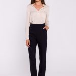 Elegancki kombinezon z tkaniny, zaprojektowany z baskinką w pasie, która podkreśla talię i dodaje kobiecego akcentu. Dekolt w kształcie litery V nadaje szyku, a krótkie rękawy dodają lekkości. Nogawki zaprasowane na kant i poszerzone u dołu optycznie wydłużają sylwetkę, tworząc nowoczesny i stylowy wygląd. Kombinezon zapinany na kryty zamek z tyłu, bez podszewki, co zapewnia komfort noszenia. Starannie zaprojektowany i uszyty w Polsce, to idealny wybór dla kobiet, które szukają modnej alternatywy dla klasycznych sukienek.