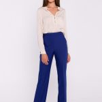 Elegancki kombinezon z tkaniny, zaprojektowany z baskinką w pasie, która podkreśla talię i dodaje kobiecego akcentu. Dekolt w kształcie litery V nadaje szyku, a krótkie rękawy dodają lekkości. Nogawki zaprasowane na kant i poszerzone u dołu optycznie wydłużają sylwetkę, tworząc nowoczesny i stylowy wygląd. Kombinezon zapinany na kryty zamek z tyłu, bez podszewki, co zapewnia komfort noszenia. Starannie zaprojektowany i uszyty w Polsce, to idealny wybór dla kobiet, które szukają modnej alternatywy dla klasycznych sukienek.