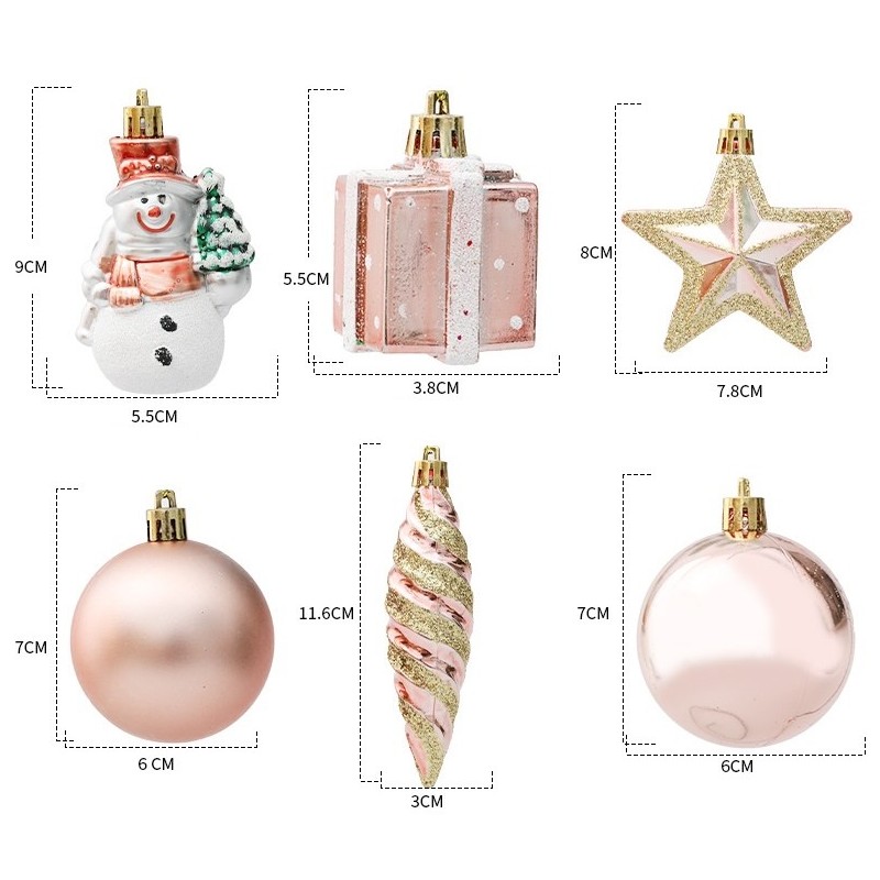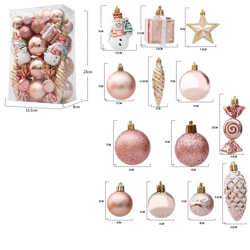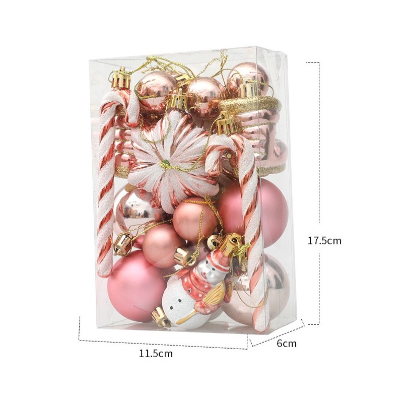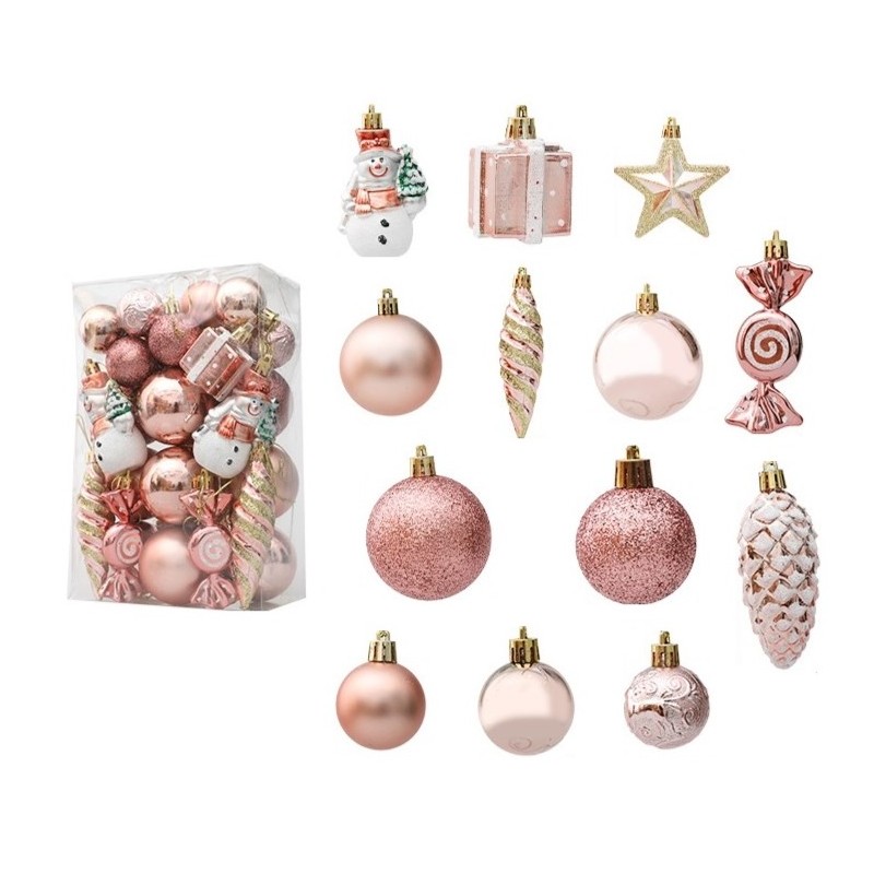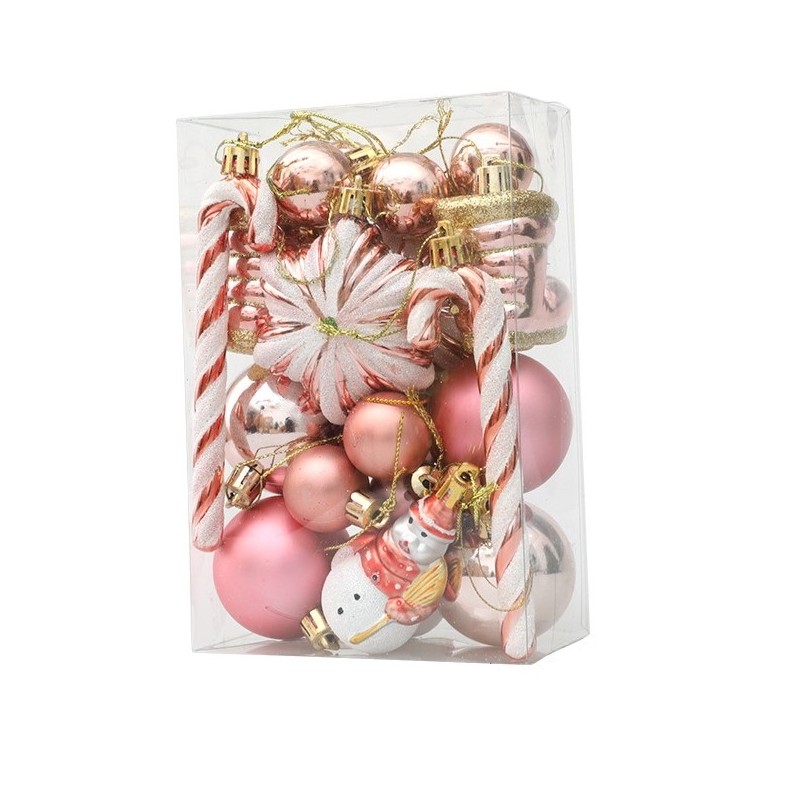 Komplet bombek 29 sztuk w opakowaniu różowe, bombki na choinkę BSN50