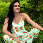 Wygodna, dwuczęściowa piżama wykonana z miękkiej, drukowanej satyny. Zaprojektowana tak aby podkreślić linię biustu, oczarować delikatnym dekoltem i ślicznymi, cieniutkimi ramiączkami, których długość można regulować. Spodnie długie o komfortowych nogawkach, na miękkiej gumce w pasie.