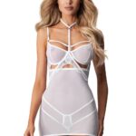 Wow! Ten komplet wart jest grzechu! Masz ochotę podkręcić swoją stylizację kładąc nacisk na niespodziankę wieczorem? Śmiało sięgnij po ten najnowszy komplecik Nudelia od Obsessive. Komplet wykonano z prześwitującego materiału z efektem „second skin”, a całość podkreślono wyrazistymi lamówkami, które zmysłowo pną się po sylwetce kusząc spojrzenie. Góra w formie półgorsetu/topu, na cienkich, regulowanych ramiączkach, konstrukcja soft. Figi gładkie i delikatne.
