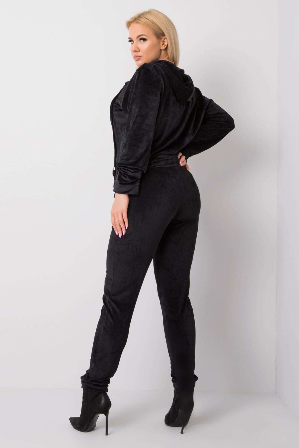 Komplet welurowy składający się z bluzy i długich spodni. Bluza z długim rękawem oraz kapturem, zapinana na zamek, Na przodzie kieszenie wsuwane. Długie spodnie z wiązaniem w pasie, po bokach kieszenie wsuwane.