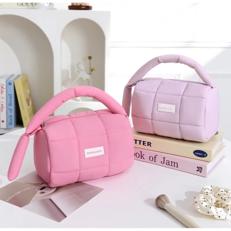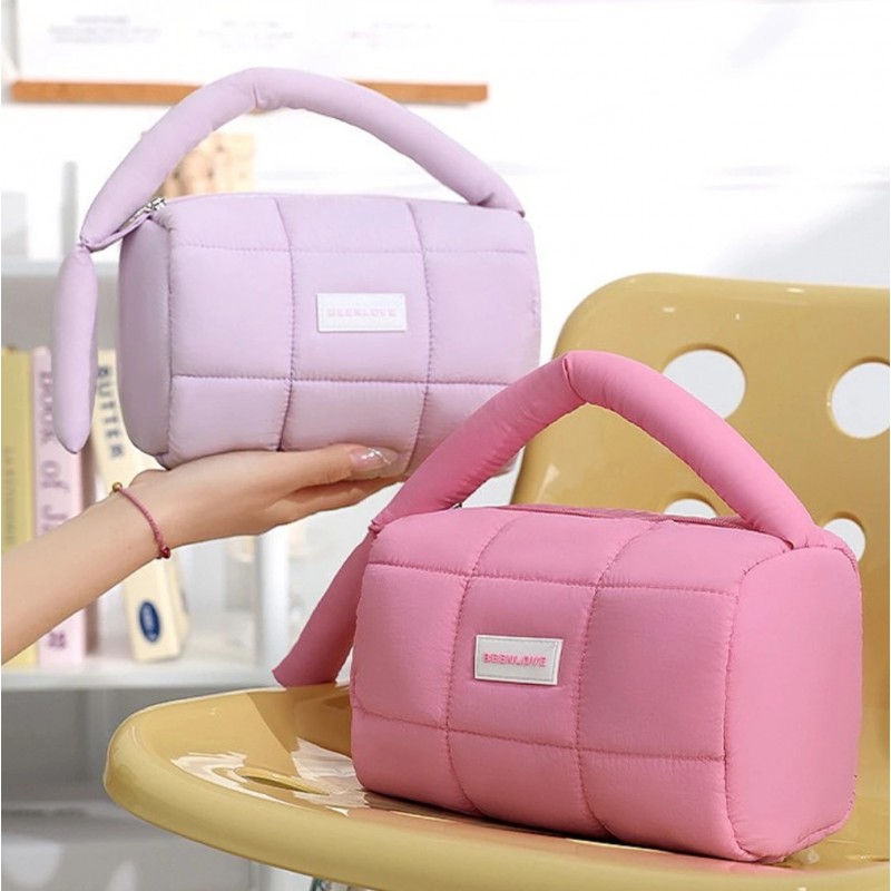 Kosmetyczka damska pikowana kuferek z rączką 18,5 x 12,5 x 13 cm KS140R