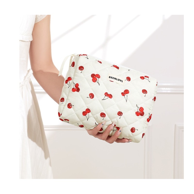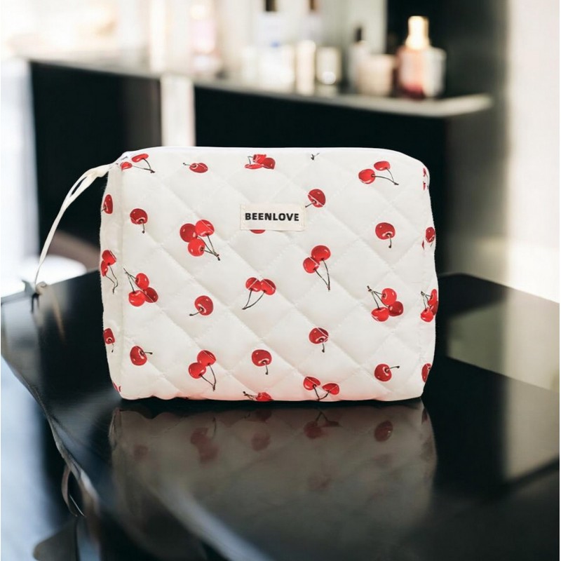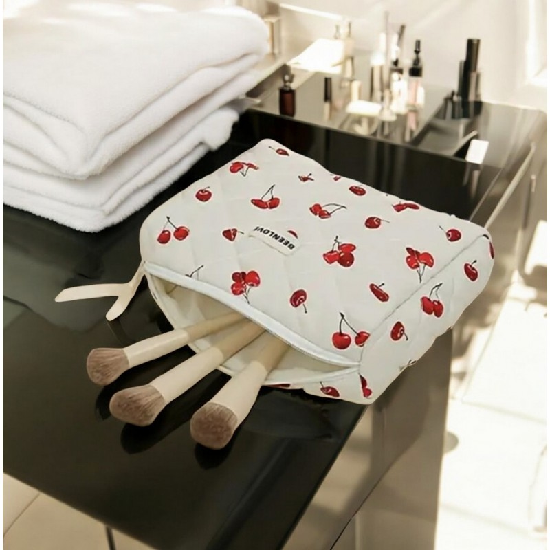 Kosmetyczka damska pikowana w wisienki 19 x 24 x 7cm KS124