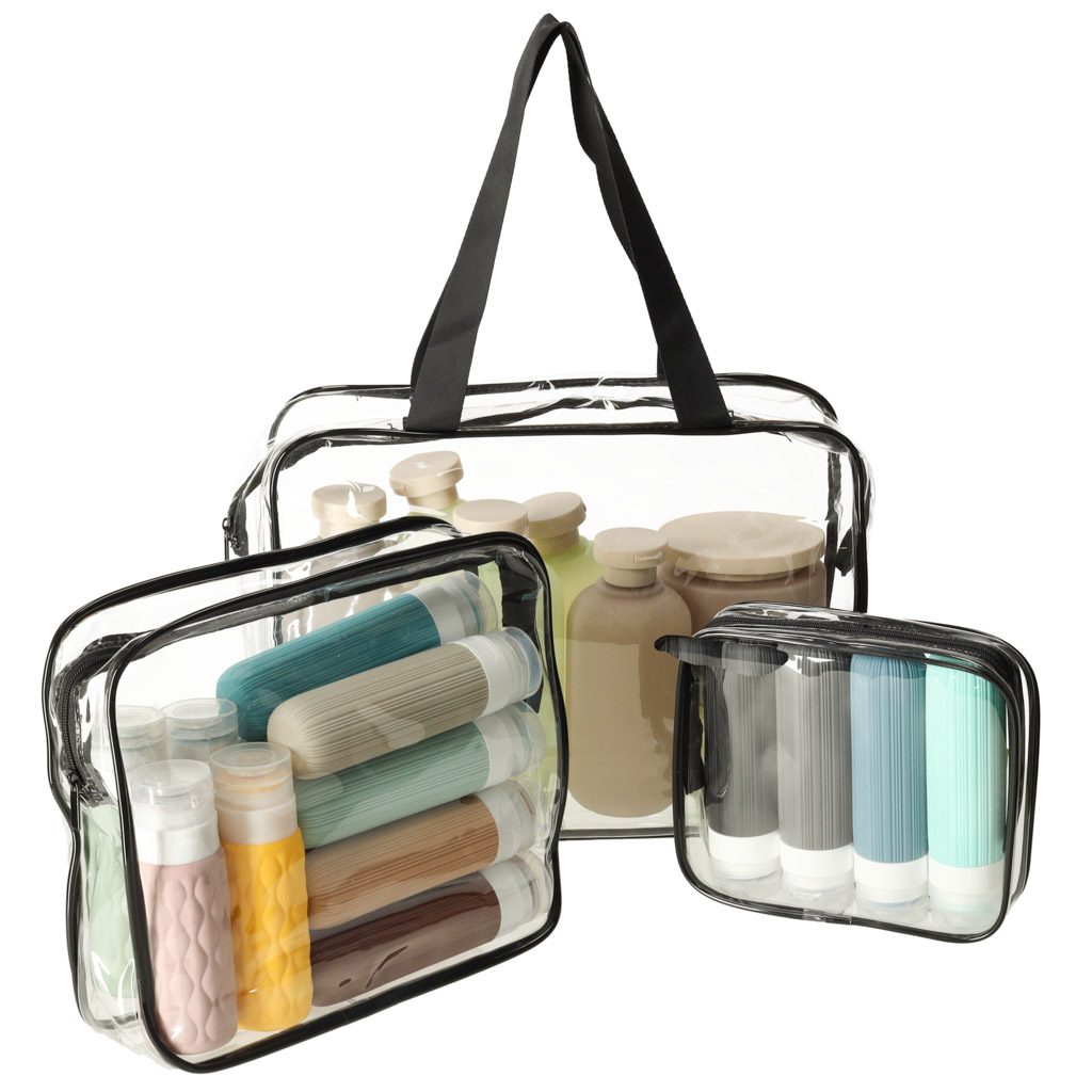 Kosmetyczka przezroczysta transparentna podróżna organizer do samolotu 3 sztuki