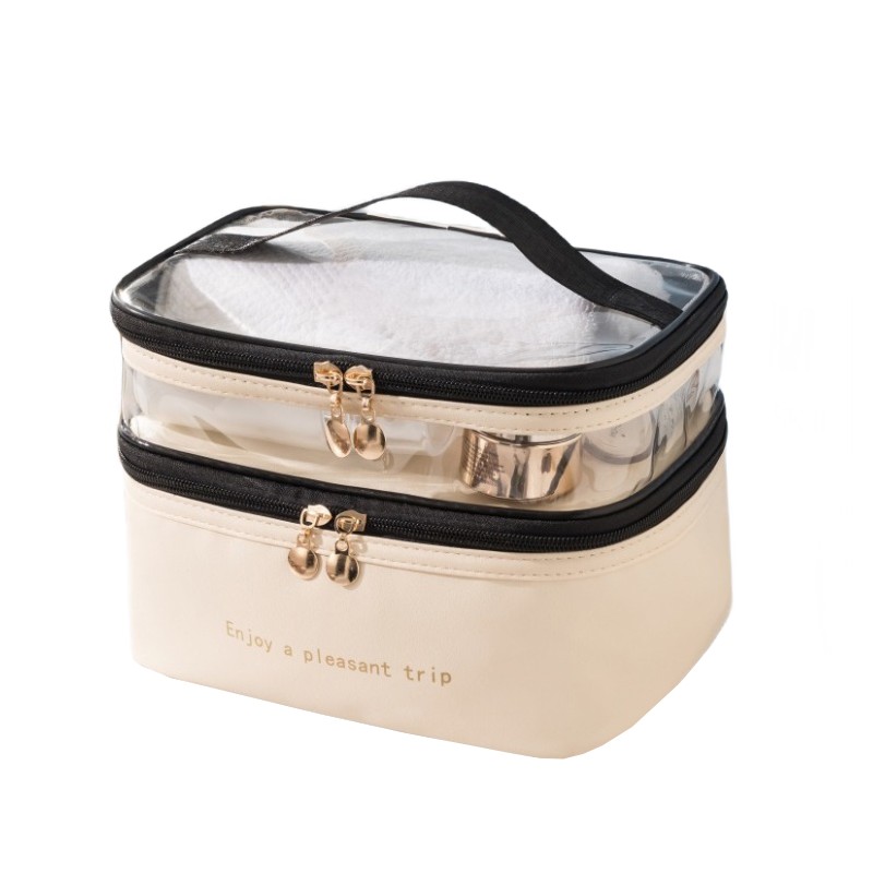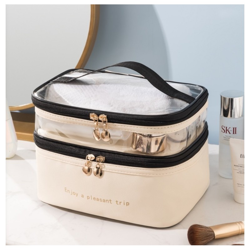 Kosmetyczka rozkładana 2 poziomowa kremowa 17x23x15 cm KS92WZ3