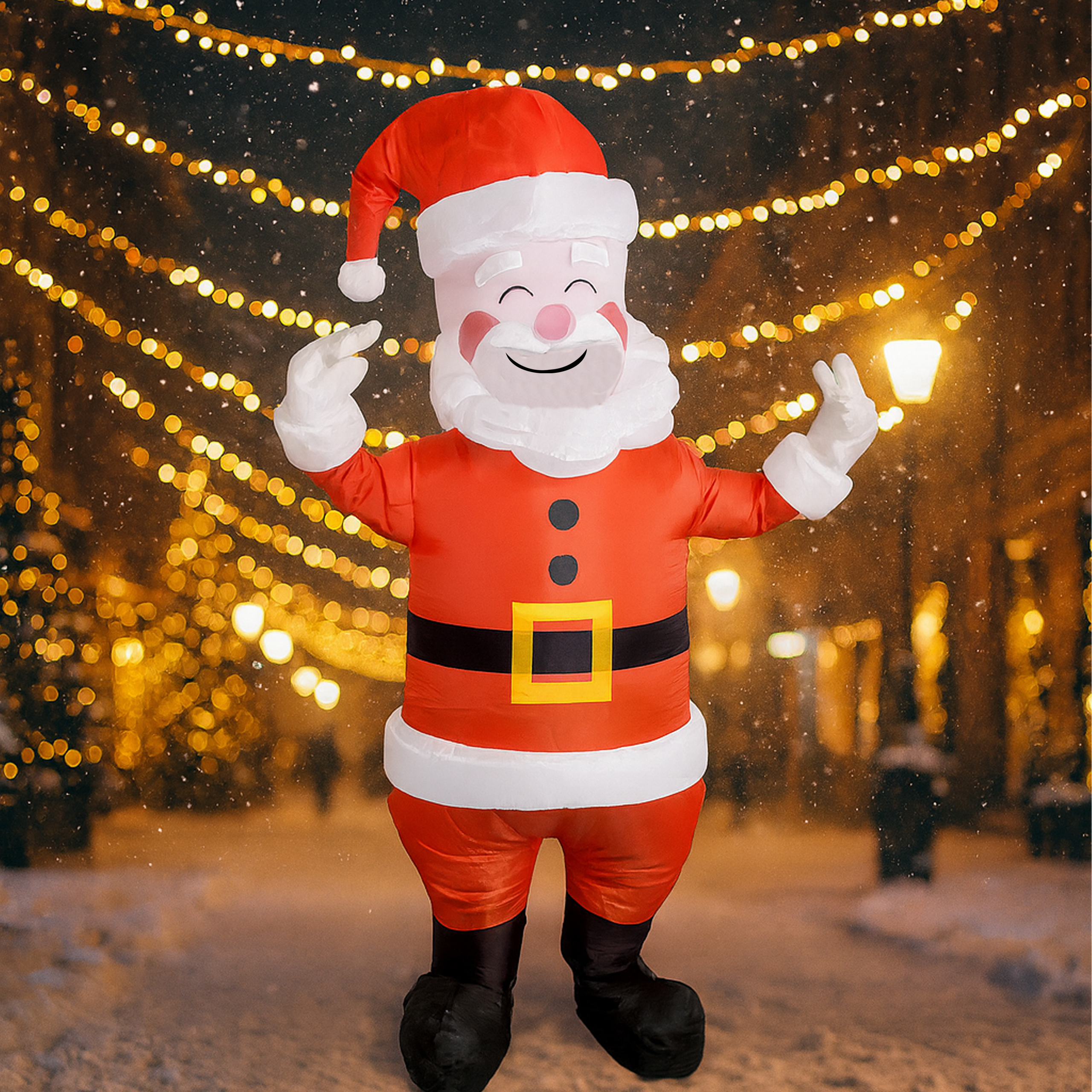 Dmuchany Kostium Mikołaja 150–190 cm – idealna atrakcja na święta, imprezy i eventy! Lekki, wygodny i trwały strój, który szybko napełnia się powietrzem dzięki dołączonej dmuchawie. Pasuje na większość dorosłych, zapewnia niezapomnianą zabawę i świąteczny klimat.