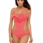 Zmysłowy i kobiecy, ten kostium kąpielowy został stworzony z myślą o kobietach, które chcą czuć się pewnie i stylowo na plaży. Biustonosz z usztywnianymi miseczkami, dolnymi fiszbinami i dekoltem w kształcie serca pięknie eksponuje biust, unosząc go i zaokrąglając. W zestawie znajduje się duży push-up (dostępny w rozmiarach S, M, L, XL), który można łatwo wyjąć, dla pełnej swobody dopasowania. Zapinany na plecach, z odpinanymi i regulowanymi ramiączkami, zapewnia maksymalny komfort i indywidualne dopasowanie. Majteczki z niskim stanem, na podszewce i z efektownym wiązaniem po bokach, subtelnie podkreślają biodra i talię. Glamour zdobienia dodają całości luksusowego charakteru, idealnego na plażowe sesje zdjęciowe lub wyjątkowe wakacyjne chwile. Pakowany w praktyczny woreczek foliowy, gotowy na podróż. Wskazówka: zamów rozmiar większy niż zazwyczaj, model ma dopasowany krój.