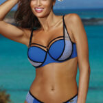 Świetny, dwuczęściowy kostium kąpielowy w którym bajeczne, barwne kwiaty ślicznie zestawiono z tłem inspirowanym militarnym kolorem. Przed Tobą wyjątkowy kostium, który podkreśli Twój charakter. W roli głównej: zmysłowy, ultra kobiecy fason i wyjątkowa stylistyka. Becky M-482 to gorąca, top-owa nowość z kolekcji przewidzianej na tegoroczne lato. Miseczki usztywniane, z fiszbinami i dużym wypełnieniem push up umieszczonym na stałe w modelu. Świetnie unoszą, modelują i optycznie powiększają piersi. Konstrukcja przewidziana na małe i średnie biusty. Push up bez możliwości wyjęcia, dostępny w rozmiarach S, M, L, XL, XXL. Figi gładkie, wiązane po bokach na kuszące kokardki. Krój najmodniejszy – tzw. brazylijski, czyli wysoko wycięty z tyłu, zjawiskowo zdobi pośladki. Dla pełnego brazylijskiego efektu, figi należy znacząco pociągnąć ku górze bioder.