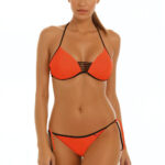 Zmysłowy kostium kąpielowy z włoskiej tkaniny, elegancja i kobiecość w jednym. Ten 2-częściowy kostium kąpielowy to idealna propozycja dla kobiet ceniących styl i perfekcyjne dopasowanie. Usztywniany biustonosz z dolnymi fiszbinami i stałym wypełnieniem push-up został zaprojektowany z myślą o małych i średnich biustach, pięknie zbiera piersi z boków i unosi je ku środkowi, eksponując dekolt. Ozdobne paski na dekolcie oraz subtelne zdobienia biżuteryjne dodają mu szyku i nowoczesnego akcentu. Zapięcie na plecach i regulowane ramiączka zapewniają komfort i stabilność noszenia. Majteczki typu brazyliany z wiązaniami po bokach zmysłowo podkreślają linię bioder i eksponują pośladki, a ozdobna lamówka i delikatna podszewka gwarantują wygodę i estetyczne wykończenie. Całość została uszyta z najwyższej jakości włoskiej tkaniny Carvico Tessuti, znanej z trwałości, elastyczności i odporności na promienie UV. Kostium został elegancko zapakowany w praktyczny woreczek, idealny na wakacyjny wyjazd. Stylowy, kobiecy i idealnie dopasowany, ten kostium to must-have sezonu plażowego!