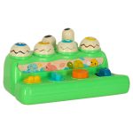 Wiek dziecka: 18 miesięcy+. Kolor: zielony z wielokolorowymi elementami. Materiał: trwałe tworzywo sztuczne. Zasilanie: 3 baterie AA (brak w zestawie). Wymiary kostki: Wysokość: 20 cm. Wysokość po otwarciu głowy krokodyla: 24,5 cm. Szerokość: 15,5 cm. G