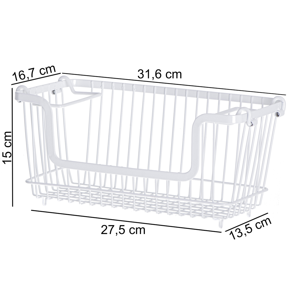 Praktyczny kosz na owoce i warzywa – pomoże w organizacji wszystkich świeżych produktów, i co więcej, zrobi to w wyjątkowym stylu, dzięki industrialnemu wyglądowi. Kosze można stawiać jedno na drugim. Tworzywo: metal. Kosz: 32 x 10,5 x 14 cm.