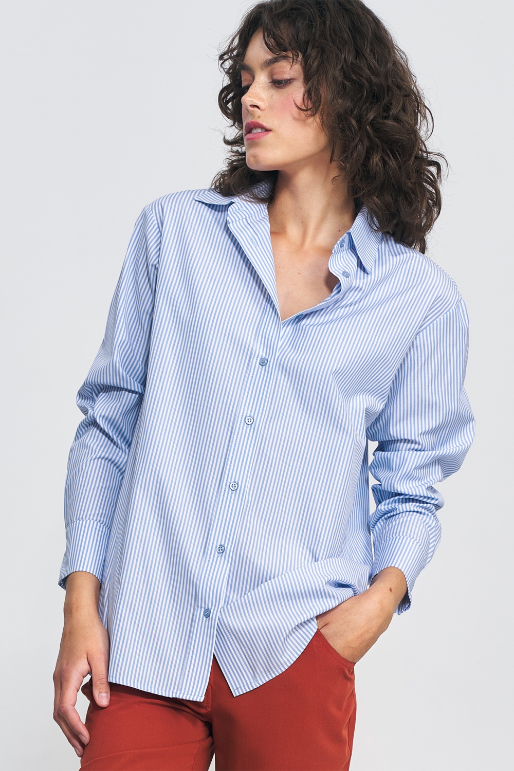 Delikatna koszula z kołnierzykiem w paski to idealne uzupełnienie stylizacji w stylu #softoffice. Przyjemny w dotyku materiał, którego skład to w 60% bawełna, zapewnia wysoki komfort noszenia. Z kolei praktyczny fason doskonale dopasowuje się ciała i pozwala przez cały dzień cieszyć się nie tylko efektownym wyglądem, ale i wygodą.