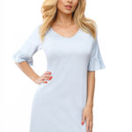 Emanująca harmonią i dyskretnym czarem koszulka T!SSi 107. Fason swobodnie opływający ciało, lekko zarysowujący kształty. Rękawki długości 3/4, wygodne, luźno opadające. Dekolt efektowny, ozdobiony szerokim pasem lśniącej koronki w motywy kwiatowe. Między piersiami zakładka, rozprowadzająca materiał symetrycznie na boki. Koszulka sięgająca do połowy uda. Produkt zapakowany w woreczku ze zdjęciem.