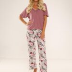 Koszulka nocna, z wysokiej jakości wiskozy, na wąskich regulowanych ramiączkach. Model efektownie ozdobiony koronką o kwiatowym motywie.