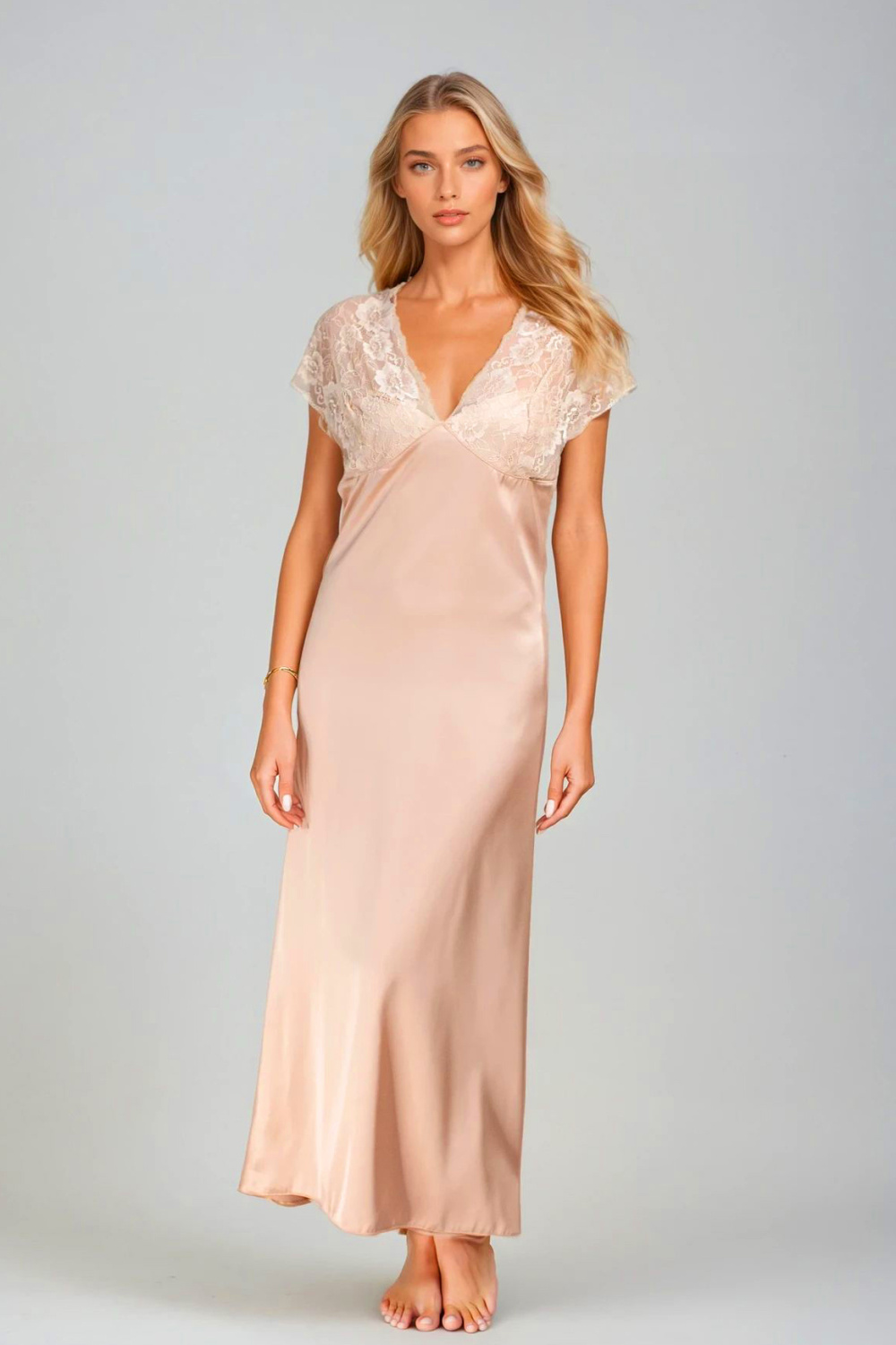 Koszulka nocna Halka Model Mactan satyna Nude – Kalimo
