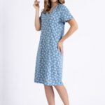 Wprowadź odrobinę elegancji i komfortu do swojej nocy dzięki naszej koszuli nocnej. Z półokrągłym dekoltem i guzikiem rozpinanym na całej długości z przodu, koszula oferuje praktyczność oraz możliwość regulacji. Jej długość przed kolano zapewnia odpowiednią osłonę i wygodę podczas snu. Luźny, komfortowy krój pozwala na swobodę ruchów, a materiał z nadrukiem jest miękki i przyjemny w dotyku, co sprawia, że koszula jest idealna na relaksujący wieczór. Rękawy 7/8 dodają jej elegancji i są praktyczne przez cały rok. Stonowana kolorystyka dodaje subtelnego uroku, czyniąc koszulę idealnym wyborem na spokojne noce oraz jako prezent dla bliskiej osoby.