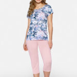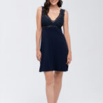 Kobieca koszulka nocna wykonana z wiskozy i elastanu, dzięki czemu doskonale dopasowuje się do ciała zapewniając najwyższy komfort noszenia. Góra koszulki i rękawki pokryte są koronką. Krótki rękaw. Przód zdobi koronkowa kieszonka z kokardką.