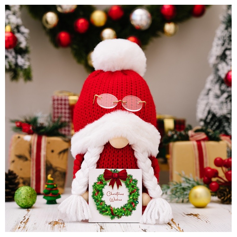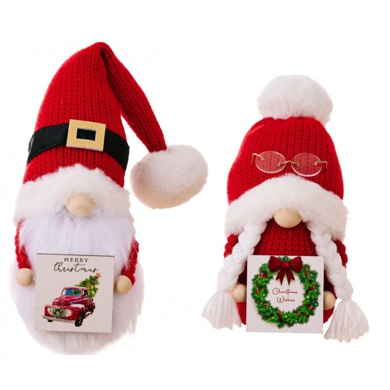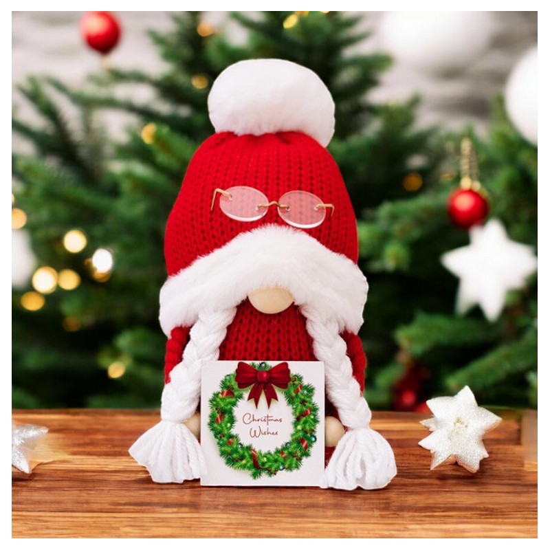 Krasnal Skrzat stojący czerwony w okularach Boże Narodzenie 24cm KSN167