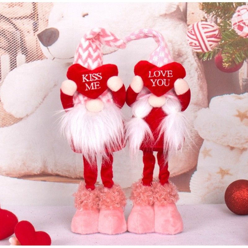 Walentynkowy krasnal na wysokich nogachWypełniony pluszemWymiary:35 x 10 x 6 cm