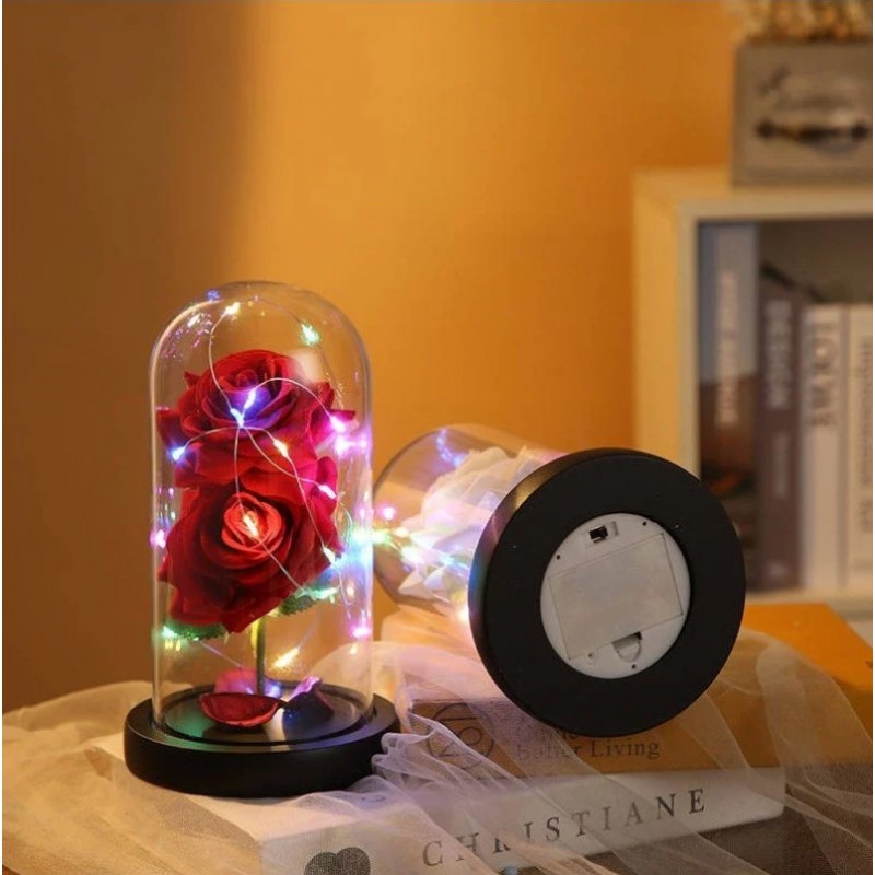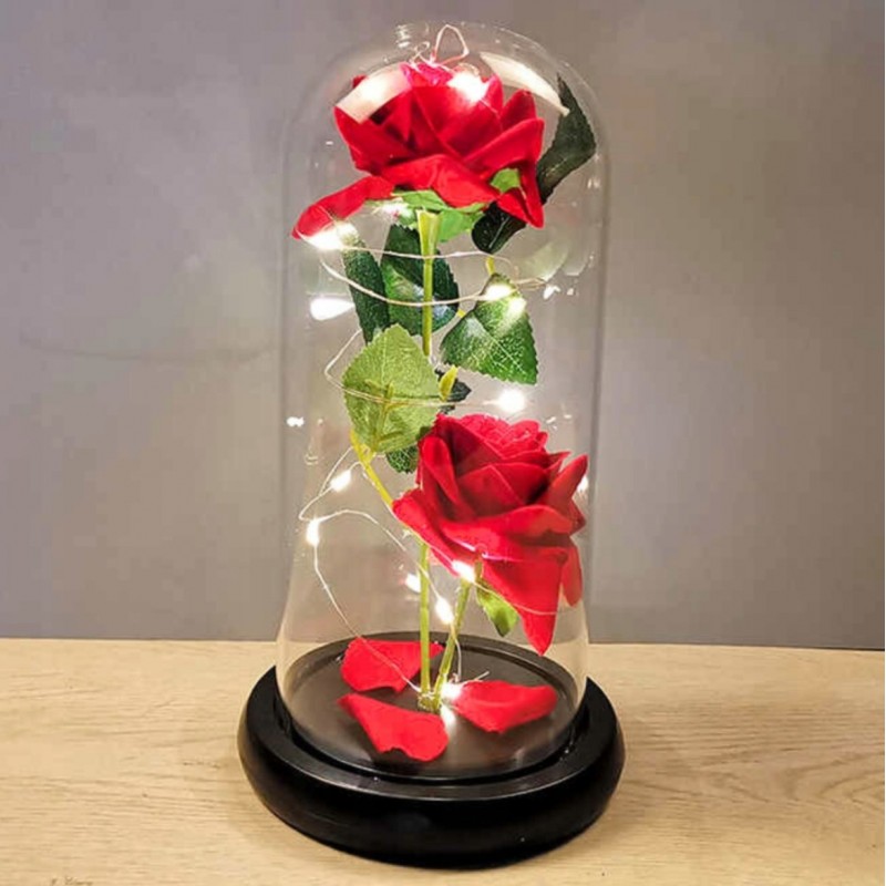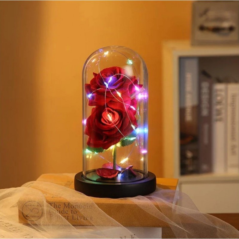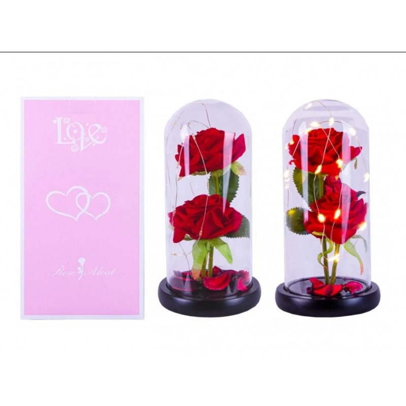 Kryształowa wieczna róża pod szklaną kopułą LED ROZ12