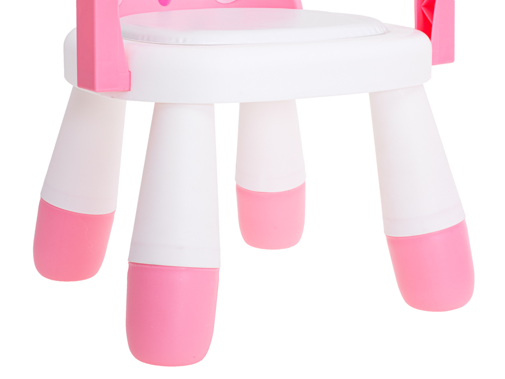Super krzesełko do karmienia i zabawy. Praktyczny element wyposażenia dziecięcego wnętrza. Można je dopasować do potrzeb dziecka dzięki dwustopniowej regulacji. Materiał: tworzywo sztuczne. Max obciążenie: 26kg. Wym. krzesełka: 31x31x45cm.