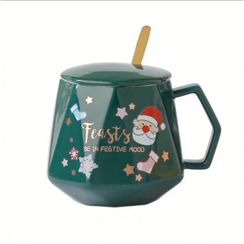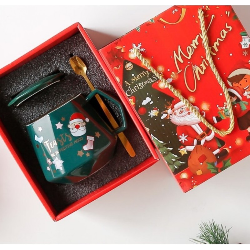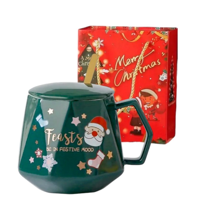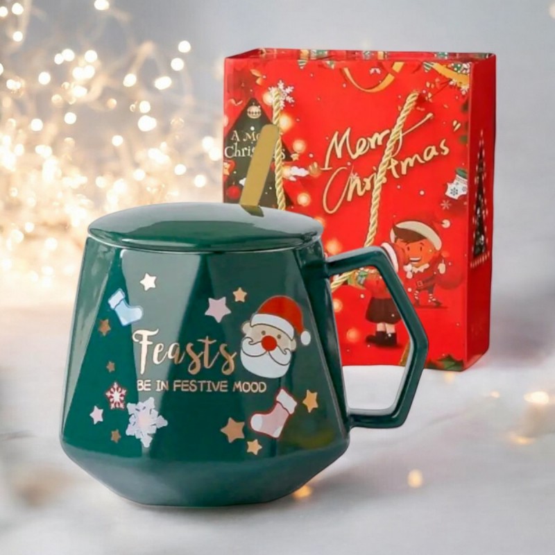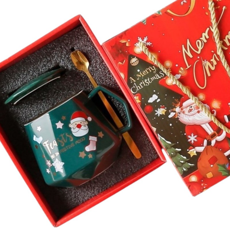 KUBEK ŚWIĄTECZNY – zestaw w pudełku z pokrywką i łyżeczką 225ml, zielony KB08ZIE