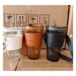 Kubek z kolorowego szkła na Kawę Herbatę ze słomką i zamknięciem 450 ML CUP09GRAF