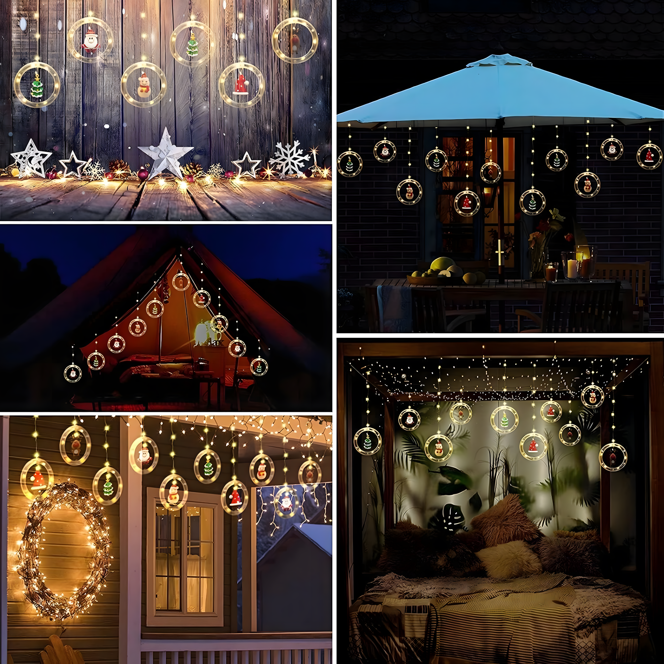Kurtyna Led Lampki Świąteczne Kółka z Figurkami 10 szt 8 Trybów 110 Led