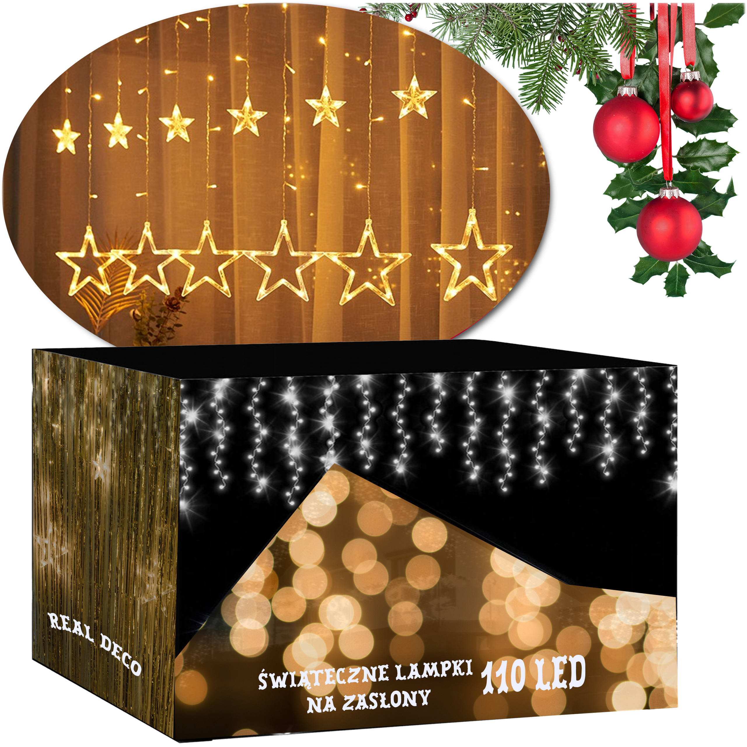 Kurtyna świetlna Gwiazdki LED, zasłona w Gwiazdy 110 LED