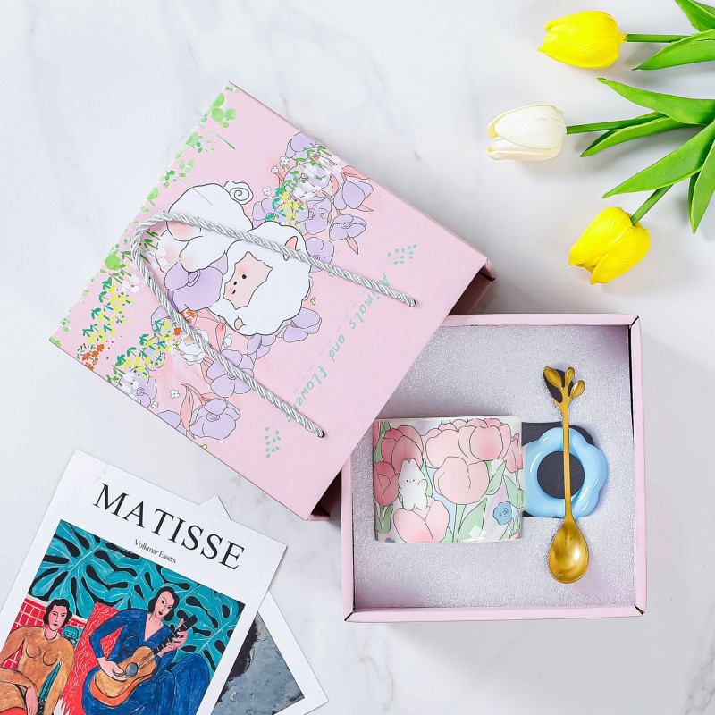 Kwiatowy Kubek z łyżeczką 280 ml + Pudełko na Prezent KB01ZO
