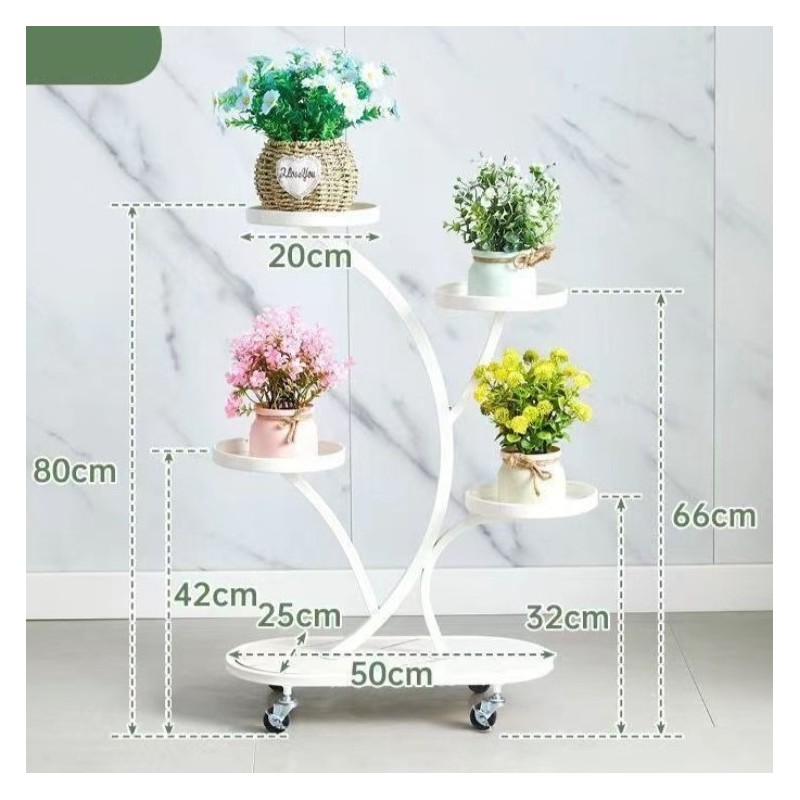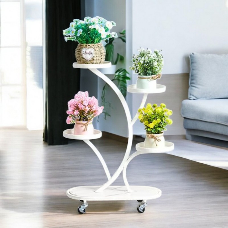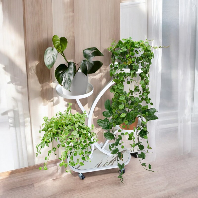 Wytrzymały stojak na rośliny z 4 kółkami. Łatwy do przenoszenia, nawet dzieci mogą go łatwo przesuwać w dowolne miejsce.