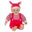 Urocza lalka Maja przypominająca prawdziwe dziecko. Po naciśnięciu na brzuszek wydaje 4 rodzaje dźwięków. Zamyka oczy, kiedy się ją położy. Ubrana w różowe spodenki i bluzeczkę w paski. Zasilanie: baterie 3x LR44 (w zestawie). Wysokość: 40cm.
