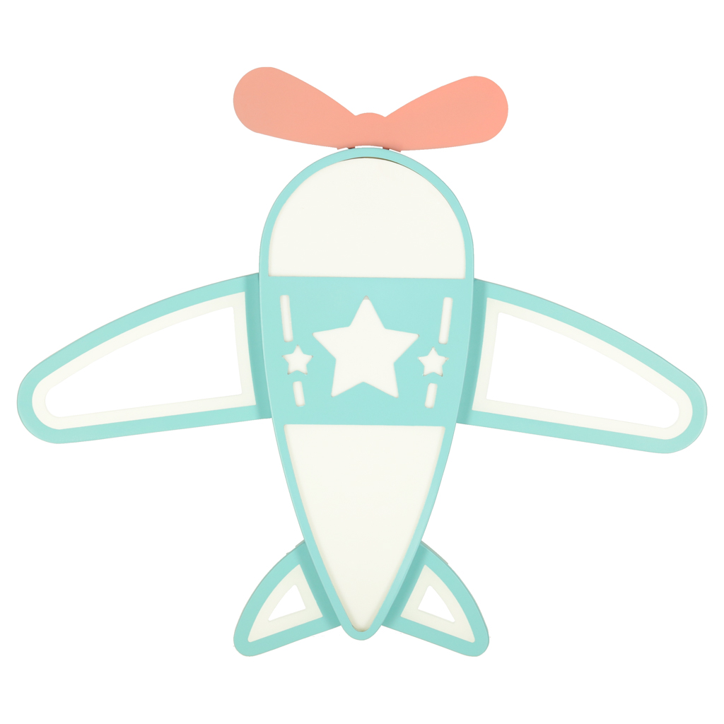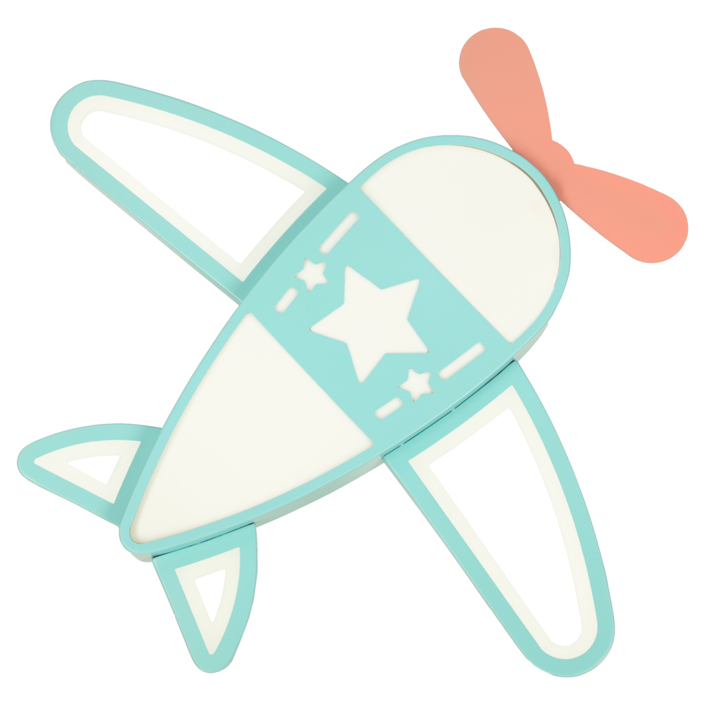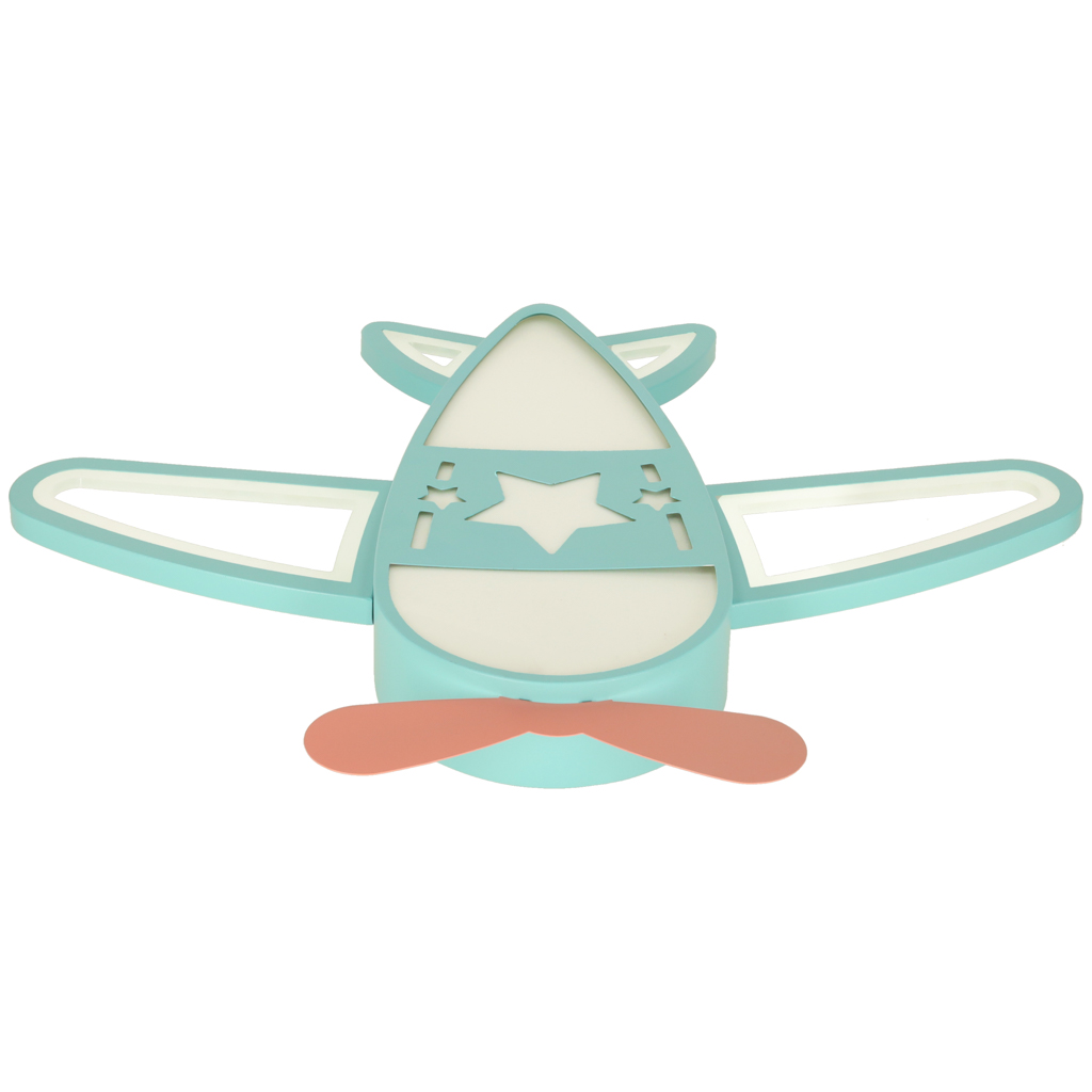 Lampa plafon LED samolot z pilotem do pokoju dziecięcego i nie tylko. Posiada funkcję regulacji ciepłego i zimnego światła oraz ściemniacz. Wymiary: 49 cm x 60 cm, kolor: turkusowy