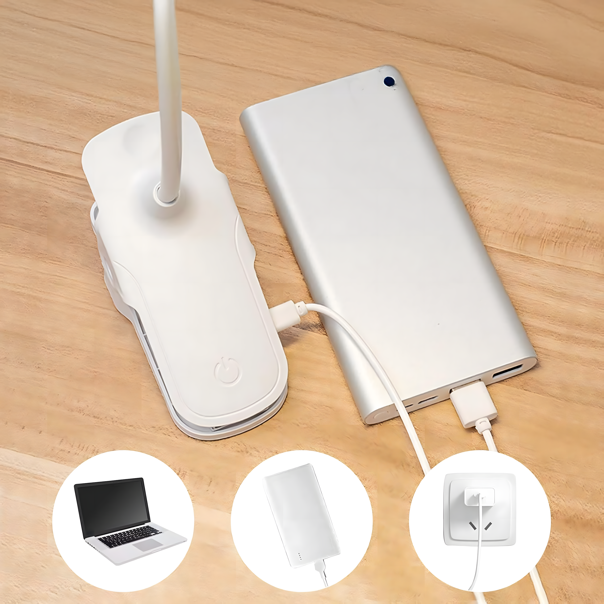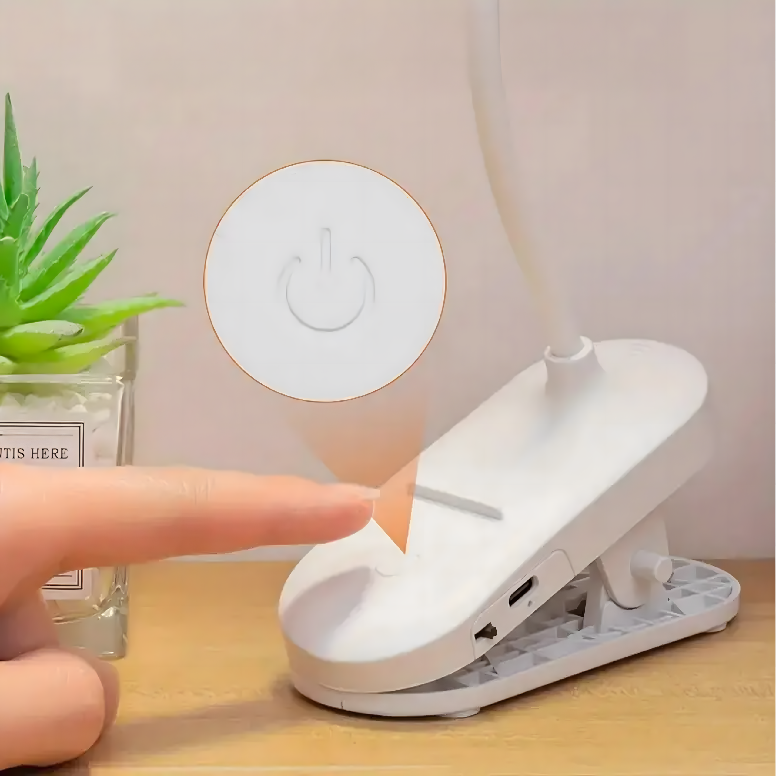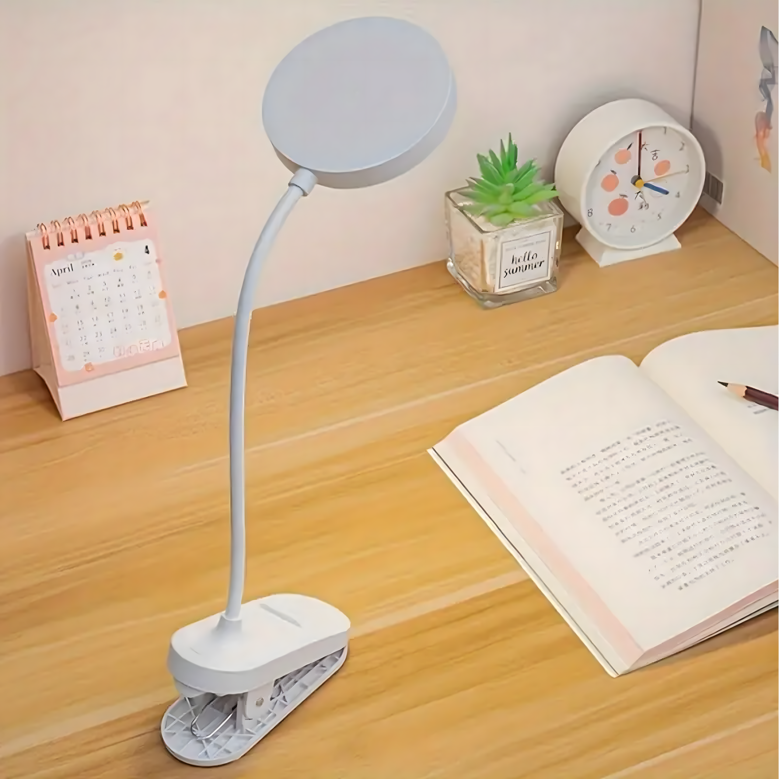 Bezprzewodowa lampka LED na klips – idealna do czytania, pracy i nauki. Posiada elastyczne ramię 360°, 3 poziomy jasności, ładowanie USB i mocny, antypoślizgowy zacisk. Można ją przypiąć do półki lub postawić na biurku. Kompaktowa, energooszczędna i przyjazna dla oczu.